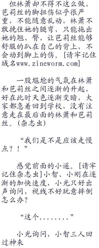 林萧看了小刚一眼,拍拍他的肩膀蹲下身子,小遥和小光扶着她慢慢的趴在了林萧的背上。