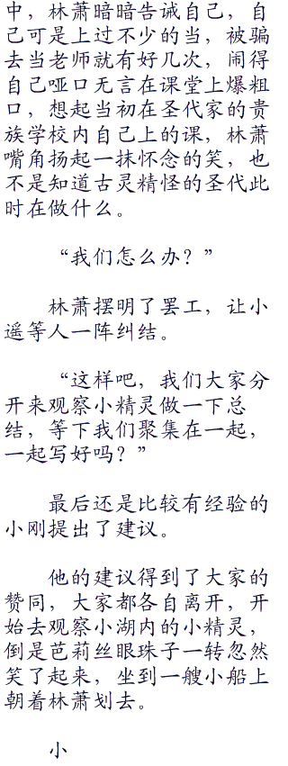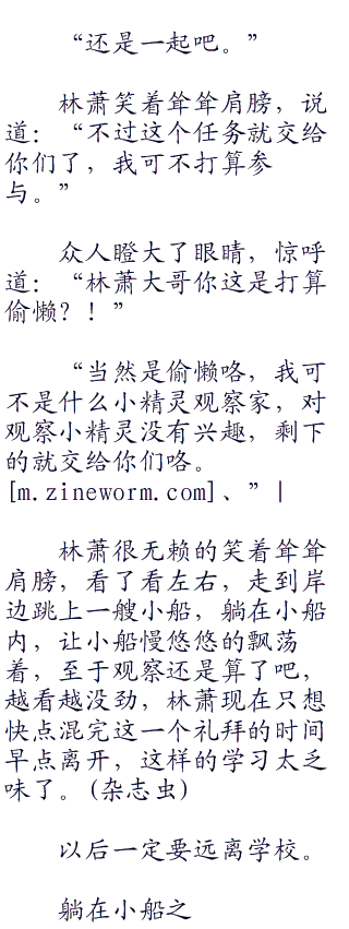 看小遥和小光还在责怪小智,林萧忍不住笑了起来,“快睡觉吧,不然等下老师来了又要扣分了。”