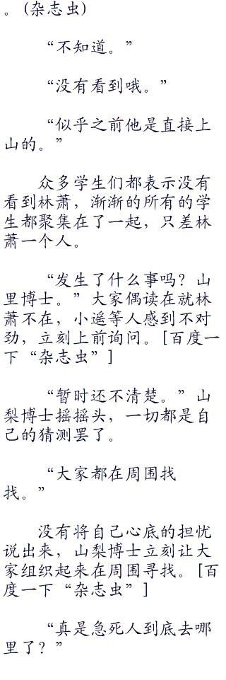 想到这里山里博士不由的打了冷颤不敢再想下去,带着几位老师朝着山上跑去,那些不少被吓得不敢乱动的学生们见老师们来了也不由自主的跟着上去,于是上山的人变得越来越多。