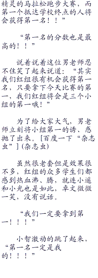 指着黑板,黑板上换成了一个圆形的图案,学校就在图案的不远处,“首先。”指了指黑暗上学校的位置,老师说道:“大家要从这里出发,跑到这里,学校就是起、点,在这个地方会有老师负责,你们每个人会挑选一个精灵球,骑在小精灵身上以最快的速度跑完这一段距离,随后更换小精灵来到这里,领取水系小精灵度过小湖,最后进入人与小