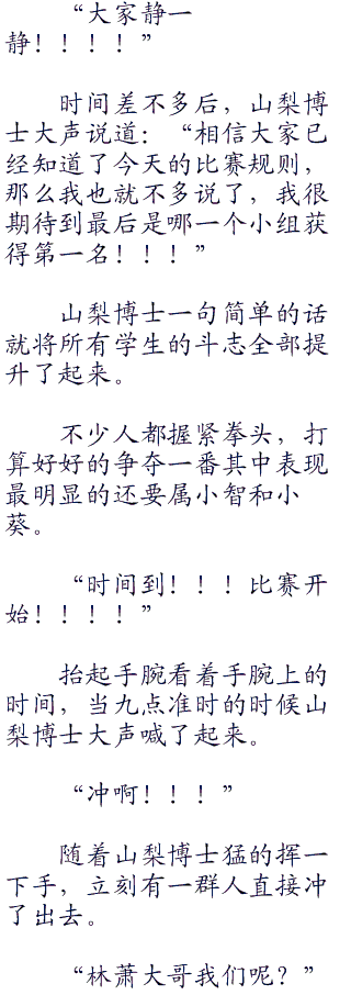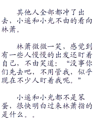来到操场内,林萧看了看周围充满斗志的学生们,微微一笑,带着小遥三人来到了教师内。