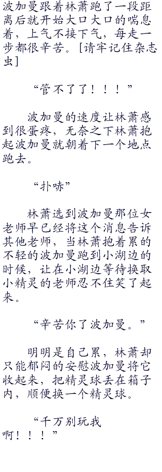 小光三人离开,林萧慢悠悠的点了根烟,离开起跑线,不慌不忙的朝着领取小精灵的地方走去。