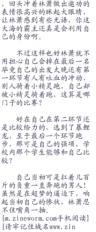 尽管对名词没有什么太大的想法但林萧也不想落到最后一名去,还好自己出发虽然比较晚,加上第一环节出了点问题,不过还是有不少人和自己一样倒霉此时还在小湖上还没有抵达对面,再者最后一个环节可是跑步,林萧需要做的就是混个不上不下的成绩就好。