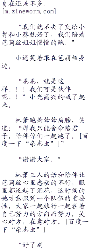 芭莉丝苦笑一声摇头,众人之中她的体力最差劲的,现在跑起来都快累死了还去争夺第一,给自己找不