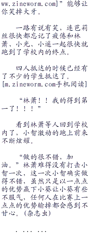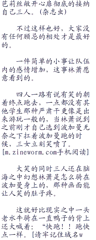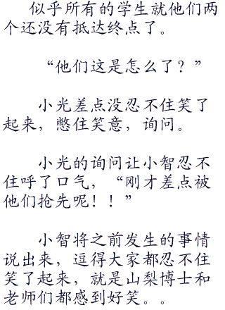 三人不由的放满脚步等林萧的靠近,第三环节比赛的路途还是比较远有点考验学生们的体力,小遥三人气喘吁吁的显然有些累了。