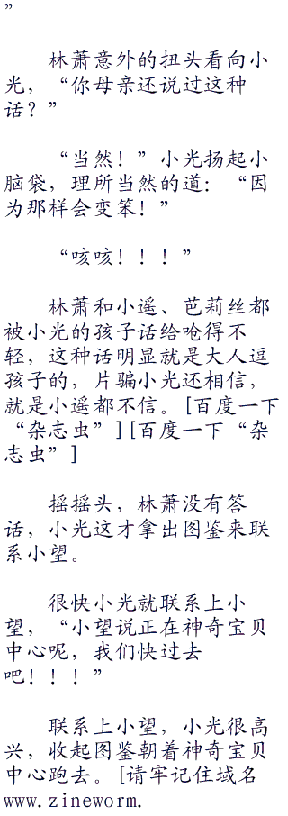 走在前往神奇宝贝中心的途中,小光和小遥不停的对着他转圈圈,让林萧哭笑不得,女孩子爱美的天性都是一直存在的,芭莉丝在意那是因为芭莉丝是成年女子,小遥基本成年了,只是女孩子很少举办成人礼,不过小光才十岁,就那么在意.......