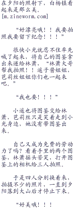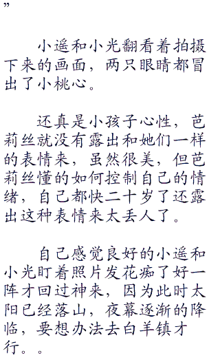 小遥、小光、芭莉丝三人对视一眼,举起小拳头,宣布立刻朝着白杨镇出发!!说的这么让人心动而且就在前往神和镇的途中不去看看真的是太可惜了!!