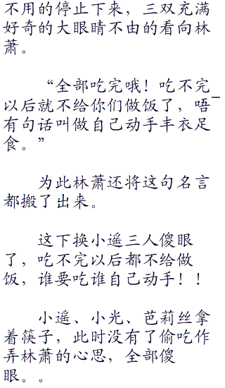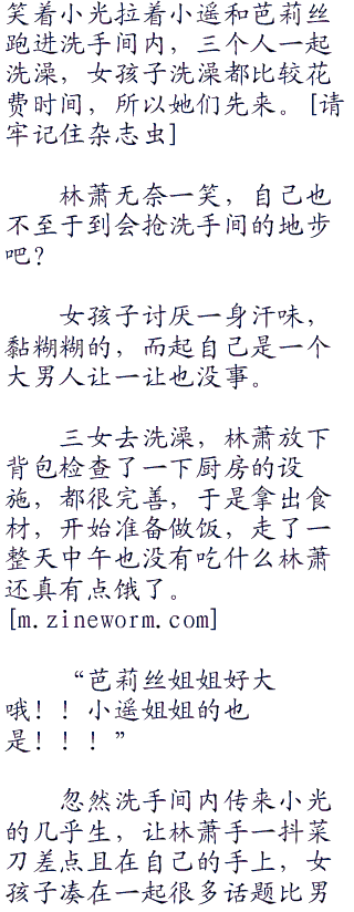 看到有独立的厨房小光和小遥立刻高兴的跳了起来,“不过要先洗澡,那么我们就先进去咯!!!林萧大哥你先等一下。”