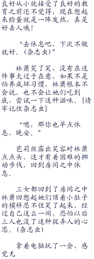 知道林萧真的责怪,三人也是松了口气,小光率先受不了,摸着自己的肚子会房间休息,现在的她只想好好的躺着什么都不想做,真的吃撑了。