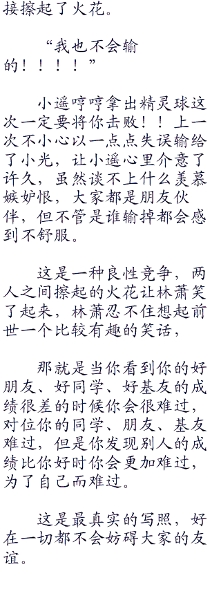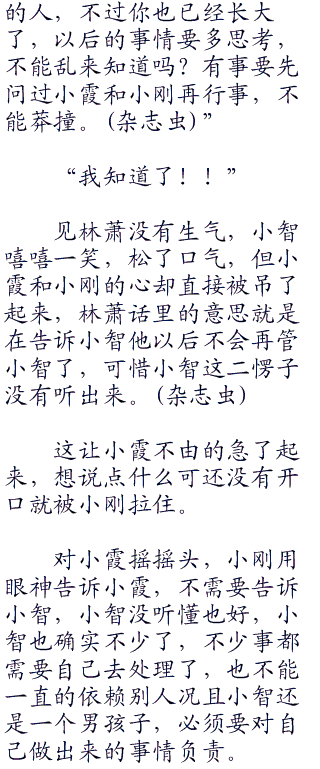被小霞一瞪眼,小智被吓得缩缩脖子,那样子让小遥和小光忍不住笑了起来,让小智一阵尴尬,脸蛋微红不好意思的挠挠头。