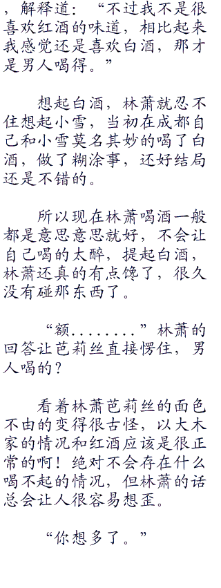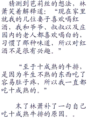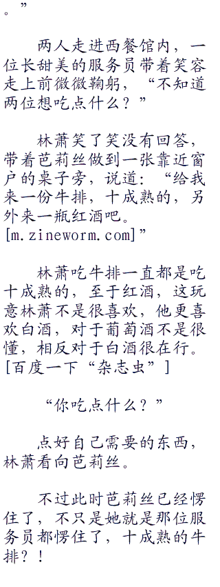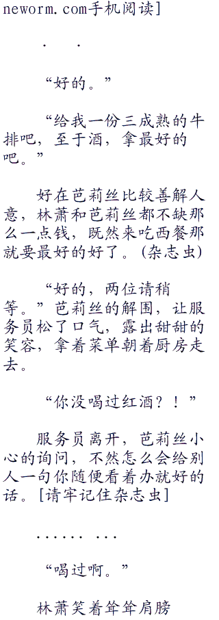 林萧对于芭莉丝想吃西餐也感到有点意外,不过既然芭莉丝想吃,那么就是尝试一下,自己也很久没有吃那东西了。