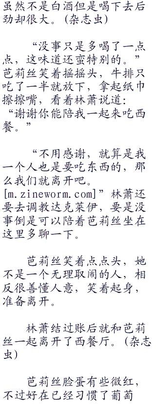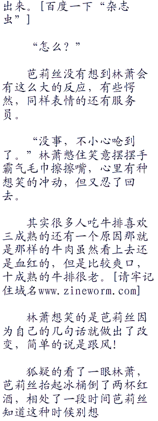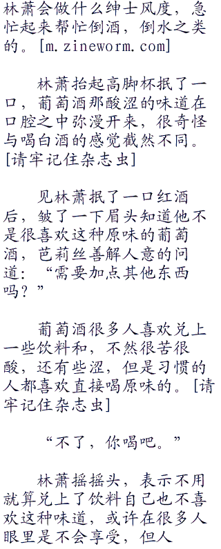 林萧没有想到芭莉丝会因为自己的话而改变,顿时被呛得不轻,刚喝下去的水也都喷了