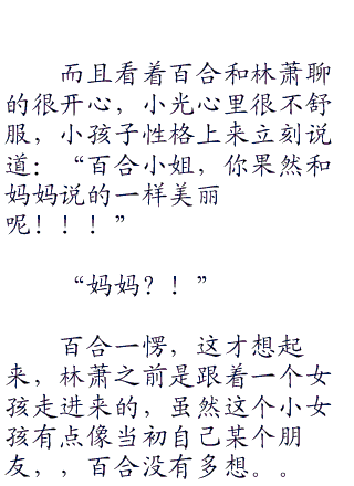 百合是小光妈妈的朋友也是对手那就意味着两人差不多大,百合看起来一副成功女强人的模样而且很年轻,那么小光的妈妈是多大结婚的,要知道现在小光都十岁了........