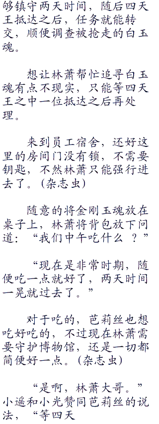 拿起那颗金刚玉魂林萧带着三人朝着博物馆内的员工宿舍内走去。