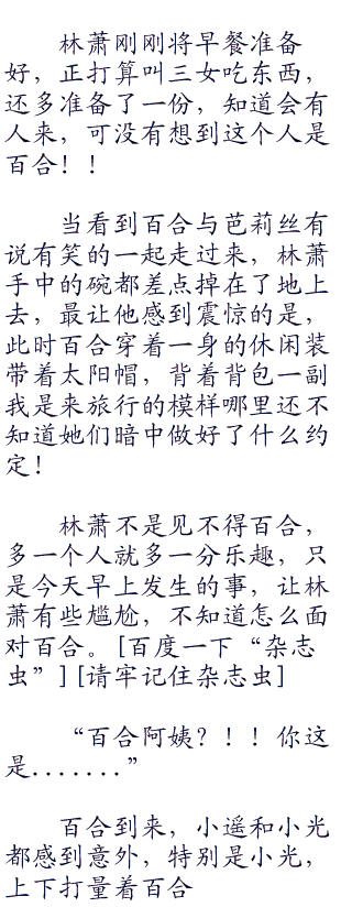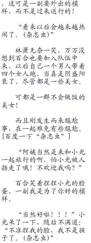 林萧微微一笑,这种小问题自然不会去否决小光,去看看也不错,听说小葵家里是开饲育屋的,正是因为如此,小葵才一直在家里帮忙,没有时间外出旅行。