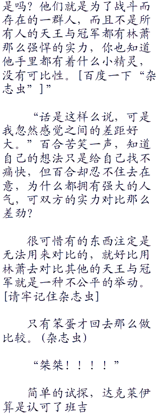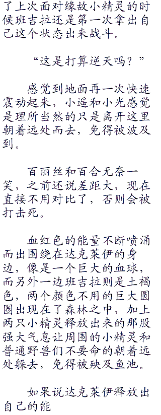 这种情况小遥经历过很多次,小光也是,只有芭莉丝和百合有些迷茫,小精灵对战会爆发出来这么强悍的波动?芭莉丝还好好歹还是经历一些事,但新加入的百合可没有见过林萧的小精灵战斗感到很震惊。