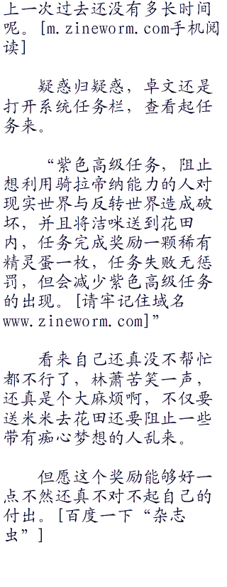 这时小雯的声音在卓文的脑海之中响起提示他有任务了,而且还是高级的紫色任务,林萧愣了一下,随后分心打开任务系统查看这次给的任务。