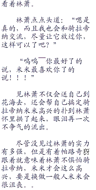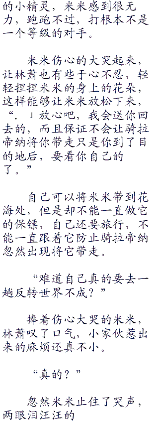 林萧知道小光的想法,但这种忙还真不好帮,除非能够让骑拉帝纳放弃追着米米的举动否则很麻烦就算是将米米送到了花田内,它转换形态也不是骑拉帝纳的对手。