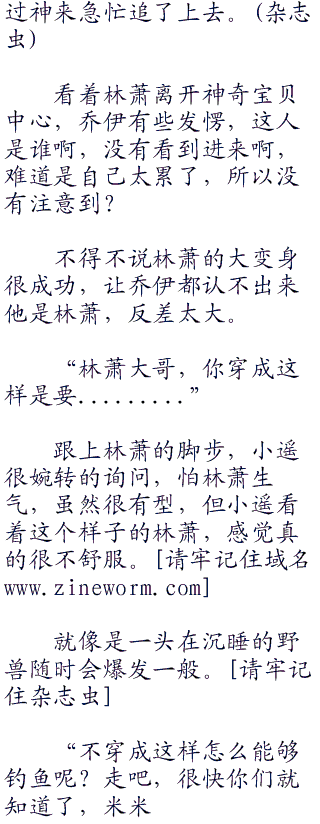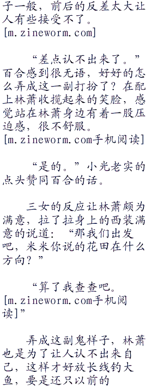 当林萧走出来后,小遥三人一愣,看着换好衣服仿佛黑客大帝一般的林萧有些傻眼。