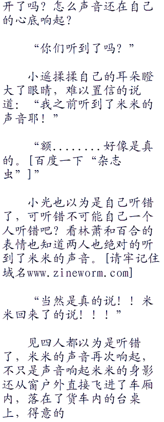 忽然一声清脆的声音在四人心底响起,让四人一愣,还以为是自己听错了,米米不是都离