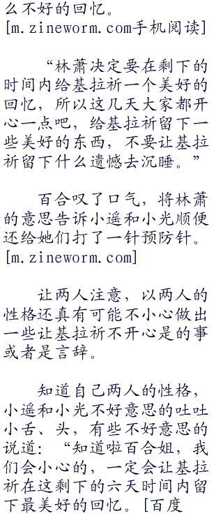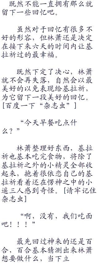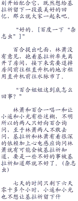 比起小光和小遥,百合理性很多,知道林萧这个时候需要多想一下,基拉祈的问题就摆在眼前,由不得林萧不去想。