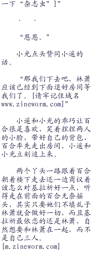 小遥和小光依旧很担心林萧的问题,但百合这么说了她们也只好冷静下来,将一切朝着好的一面去想。