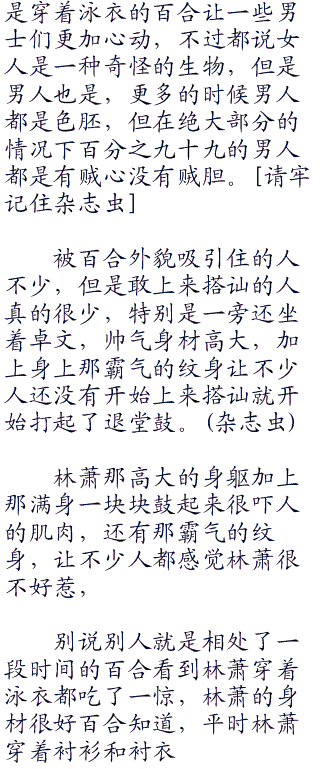 加上穿着泳衣,完美的身材加上姣好的面容让百合成为了沙滩上一道亮丽的风景线,不少人都忍不住朝着这边看来。