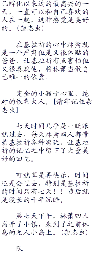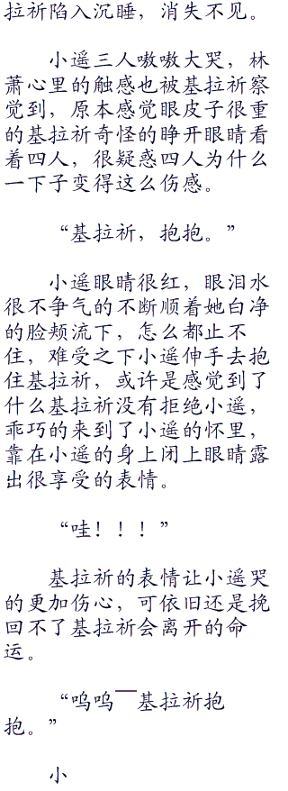 倒数第三天,林萧一个人带着基拉祈在一座小山上静静的度过了一天,虽然没有一直笑口常开,但基拉祈感觉这是自