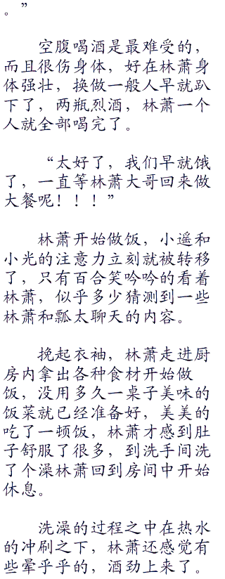 接下来的时间比较沉默,林萧和瓢太都静静的喝酒,谁都没再说话。