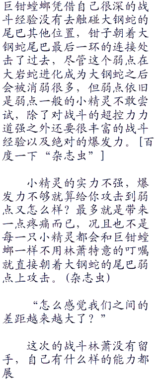 柿子就要挑选软的来捏,脖子是大钢蛇软弱的地方,不攻击这里还照着头上不断的敲?