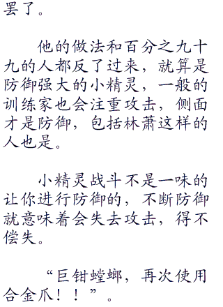 攻击结束巨钳螳螂没有收到林萧继续攻击的指令快速跳开来到林萧身前,静静的站着。