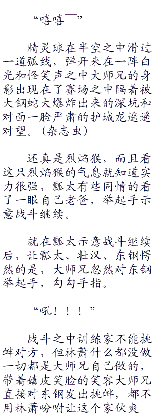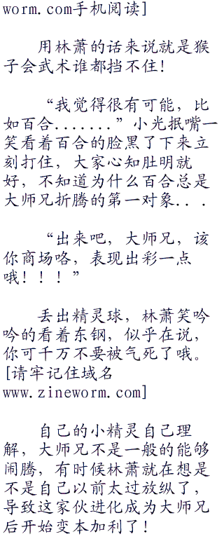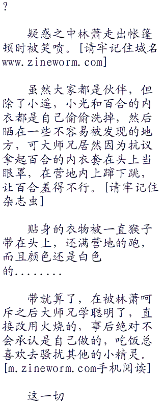 最让林萧无语的是,有一天早晨,自己正在帐篷之中换衣服,不想外面传来百合与小光的惊呼声和一阵嘻嘻哈哈的声音,一听就是烈焰猴的,这家伙什么时候从精灵球内出来的