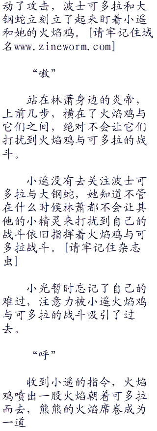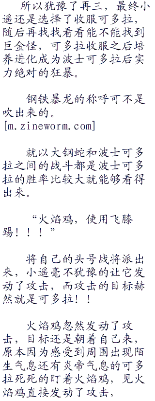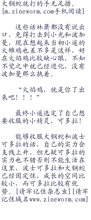 或许这次的事情还会对波加曼会造成一些刺激,特别是等小遥的战斗结束之后,小遥的小精灵之中,火焰鸡最合适与钢系小精灵战斗,和大师兄一样都是格斗系的,最为克制钢系小精灵。