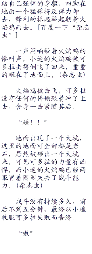 火焰鸡快速的站起来,就受到了一点轻伤,小遥松了口气。