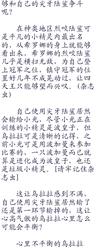 看了看小光的几只小精灵,乌拉拉眼里露出不屑的神情,就这样的小精灵怎么能