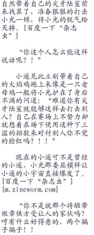 女孩子的语气很不对劲,小光感到更加奇怪,自己参加米可利杯和你没有关系吧?干嘛一上来就是语气不爽来质问我?