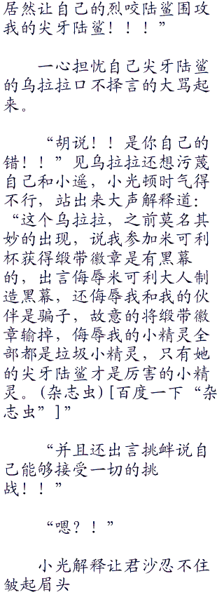 此时尖牙陆鲨哪里还有其他的心思,想死的心都有了,原本还不畏惧任何的战斗,可谁能告诉我一下就出来两只烈咬陆鲨?而且不管是实力还是气息都极为强大,这样的小精灵该怎么战斗?