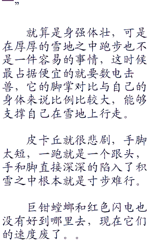 路段从这里开始周围已经变成了一片雪白,鹅毛般的大雪缓缓飘落,寒风刮在脸上让人感到一阵火、辣、辣的刺痛,走在前面的林萧尚且还能够支持,但身后的三女就感觉有些难受,冷风吹得脸庞有些冰冷,闲置时间太长的百合的甚至开始流出了清鼻涕。