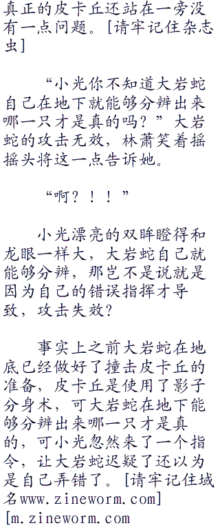 十只皮卡丘一模一样,分辨不出来哪一只才是真身,最重要的是,它们的分布很散,导致大岩蛇从地底冲出来只能攻击到一只而已,但此时皮卡丘的数量是十只!十只之中选一只,可能有那么容易选中。
