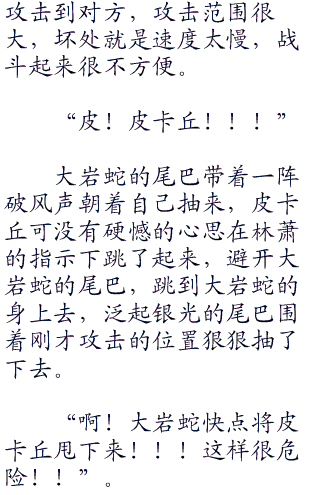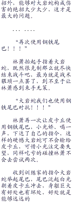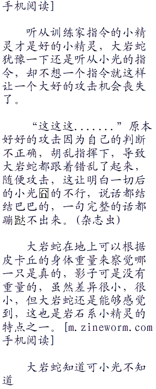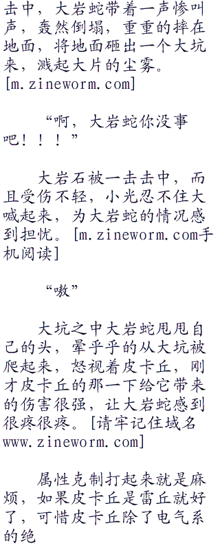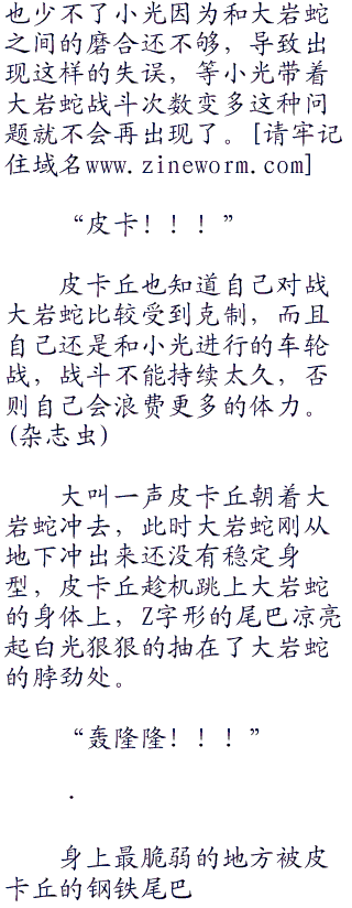 当下小光咬紧牙关,开始了选择,大喊道:“大岩蛇攻击左边的那只!!!”