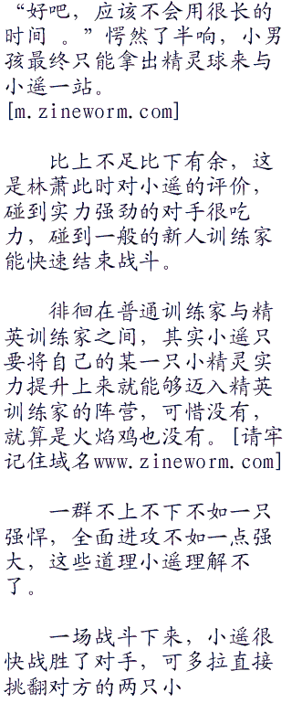 让小男孩傻眼的是自己的话还没有说完,小遥就已经抛出了精灵球,一点决绝的时间都没有给他、