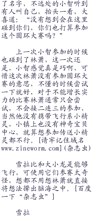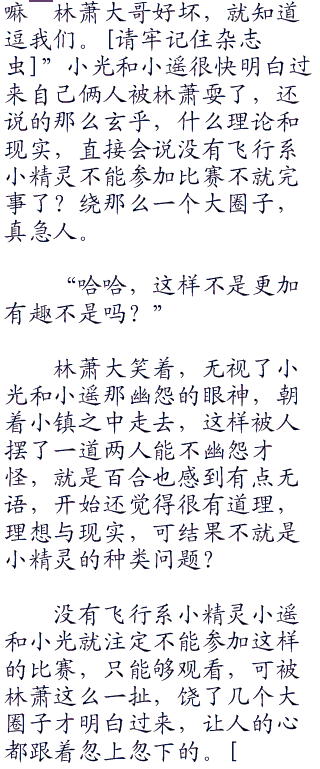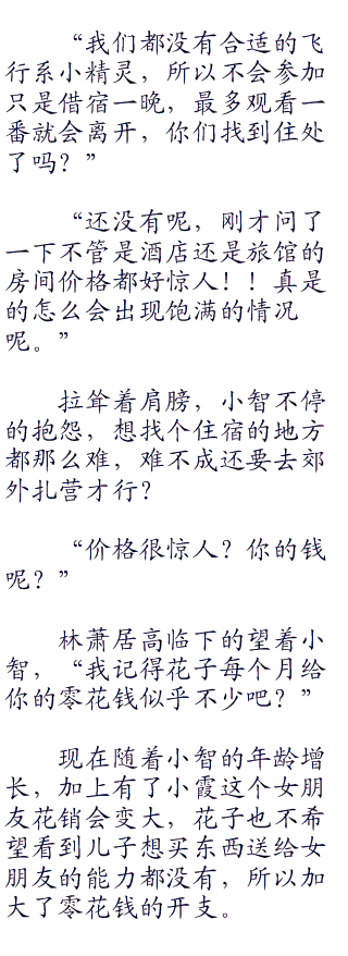 “然后就是事实,事实上那是为飞行系小精灵特别准备的比赛,所以你们不能参加。”