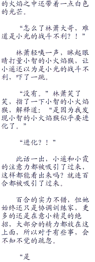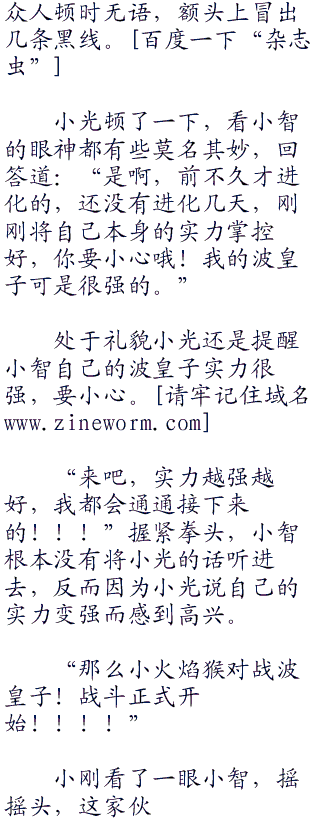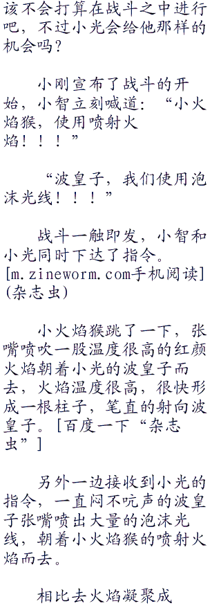 “居然是波皇子。”小智皱了一下眉头,小光使用的波皇子,自己使用小火焰猴属性上的压制太厉害,“小光你的波加曼进化拉?”