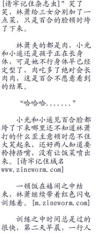 大笑,嬉闹了一阵,三人叫了一些吃的,吃过之后给林萧留下一份,便出门训练。