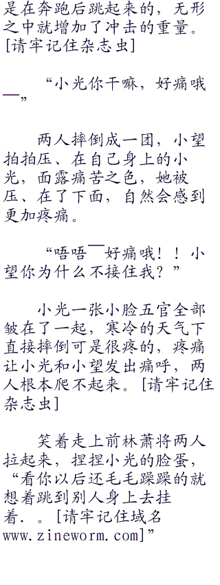 结果果然和林萧猜测的一样,小光和小望撞在一起倒在了雪地上摔了个四脚朝天。