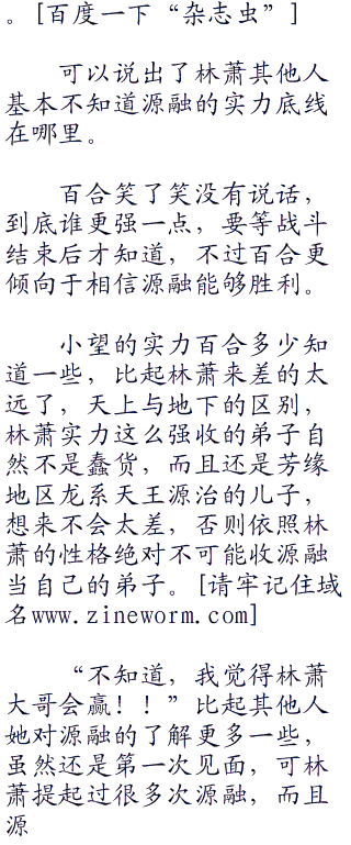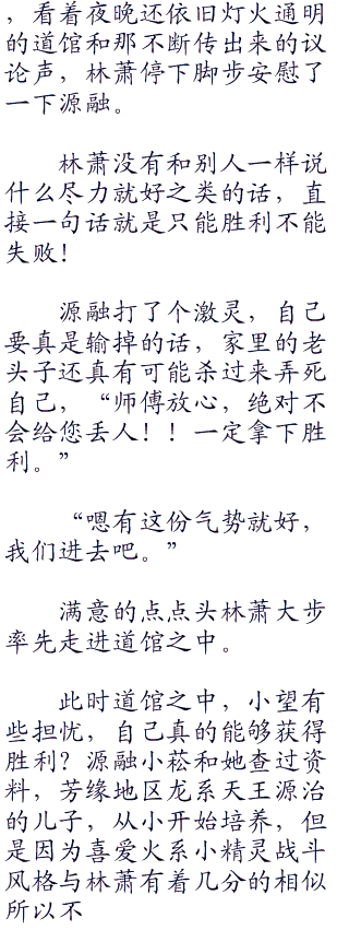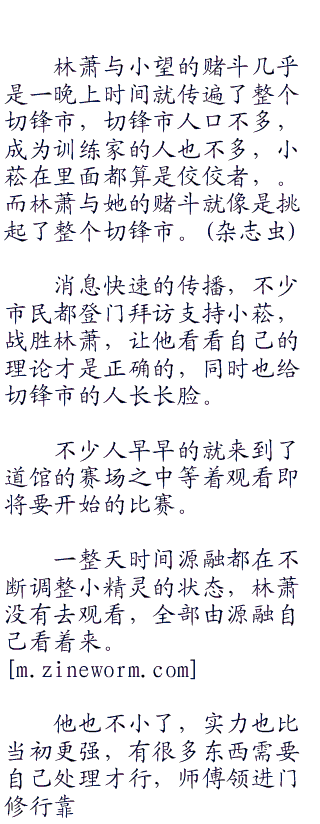 因为林萧与小菘的实力不对比,这就会导致源融战胜了小望最多得到一个调教不错的评论,可要是输掉了比赛那随之而来的评论对林萧很不利。