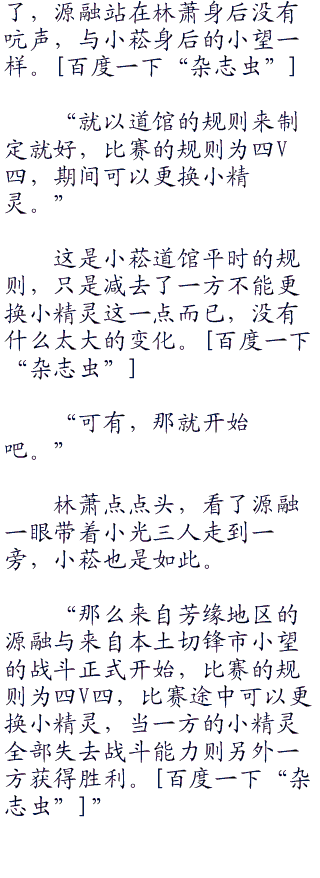 既然是在小菘的道馆之中战斗,那么规则就由小菘来制定好