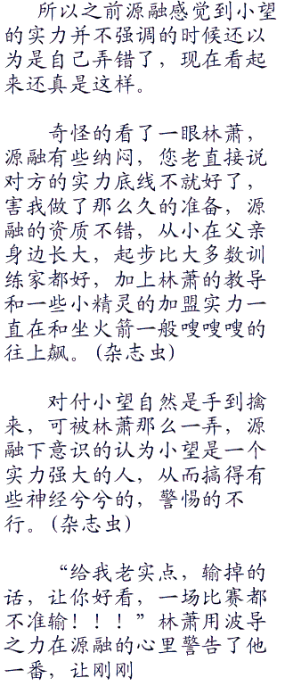 前来观战的人们没有想到小望会败得那么快,仅仅是两次的攻击罢了,就这样失去了战斗能力,他们可是来看小望是怎么捍卫自己师姐小菘的赌斗的,但谁都没想到会结束的那么快。
