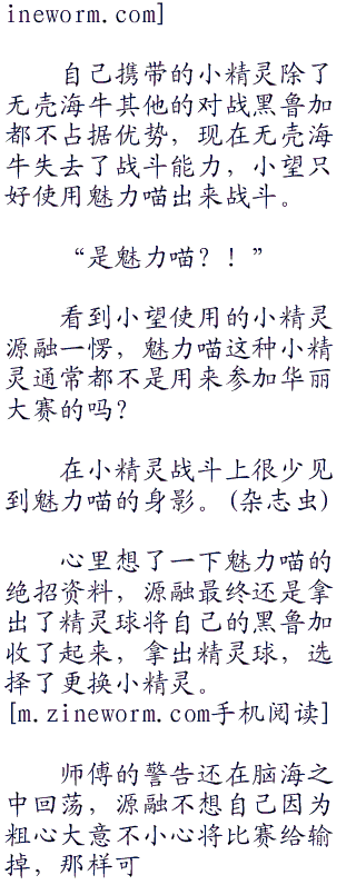 裁判看了一眼黑鲁加,战斗之中不准挑衅对方,但说的是训练家不是小精灵,老裁判当做没看到,举起手中的旗子挥舞了一下喊道:“无壳海牛失去战斗能力,黑鲁加获得胜利!!!”