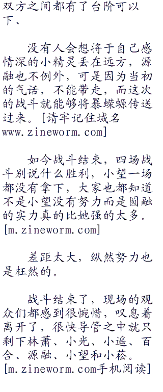 当比赛结束之后现场的观众都叹息一声,原本还以为是帮助切锋市增长面子的战斗,可结果却是倒一面的战斗,源融展现出来的实力比小望强大的太多了,四场战斗,出了第一场源融的